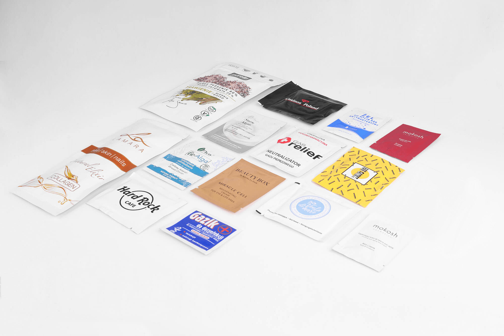We produce and customise sachets in various forms for the needs of packaging a wide range of products, including: